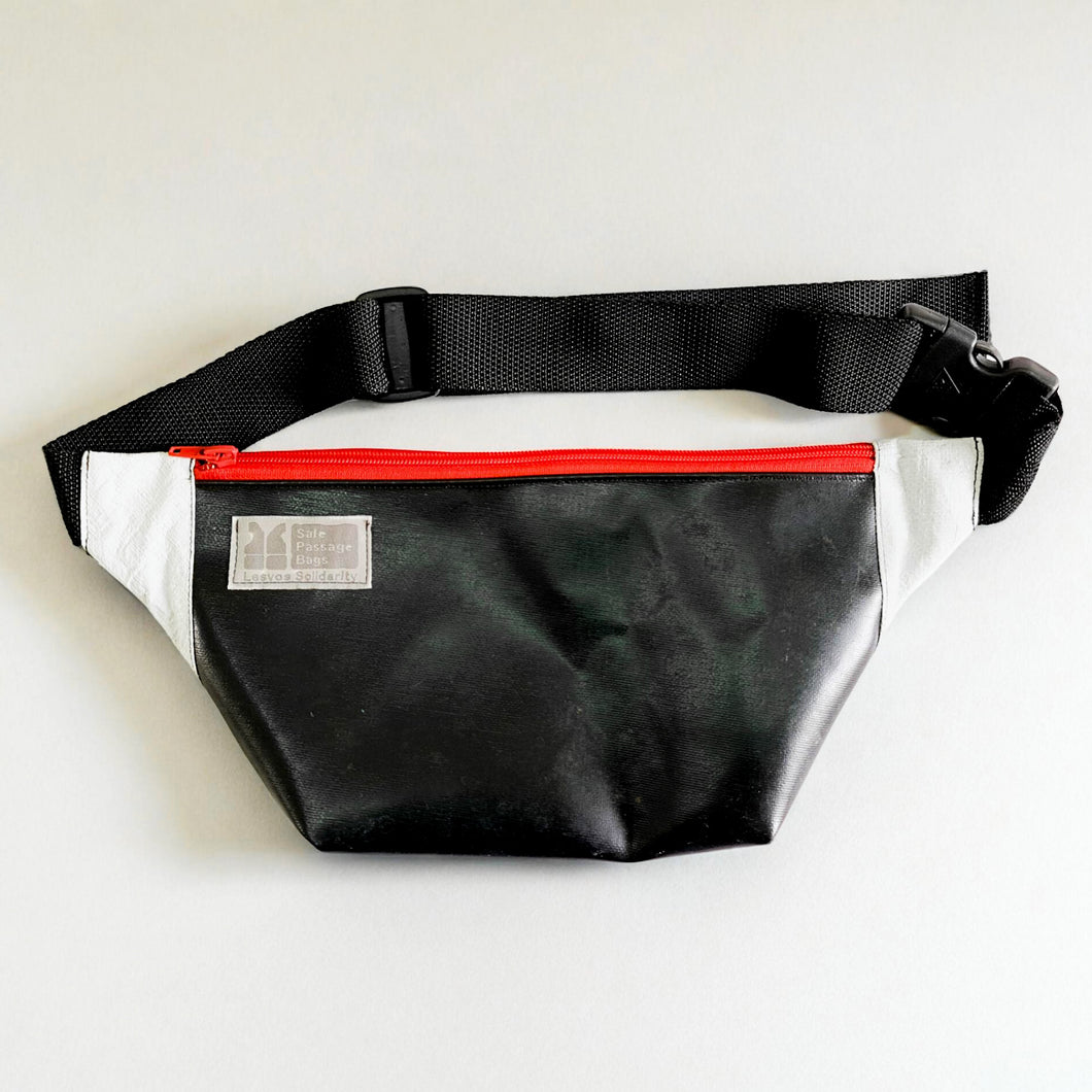 A hip bag designed for day-to-day use. Made from recycled dinghy collected from the shores of Lesvos, this sustainable bag combines style with solidarity. With an adjustable strap and ample storage - this stylish bag is perfect for holding your everyday belongings. With this bag, you also honor the difficult journey of those who crossed the sea in search of safety and join us in advocating for safe passage.